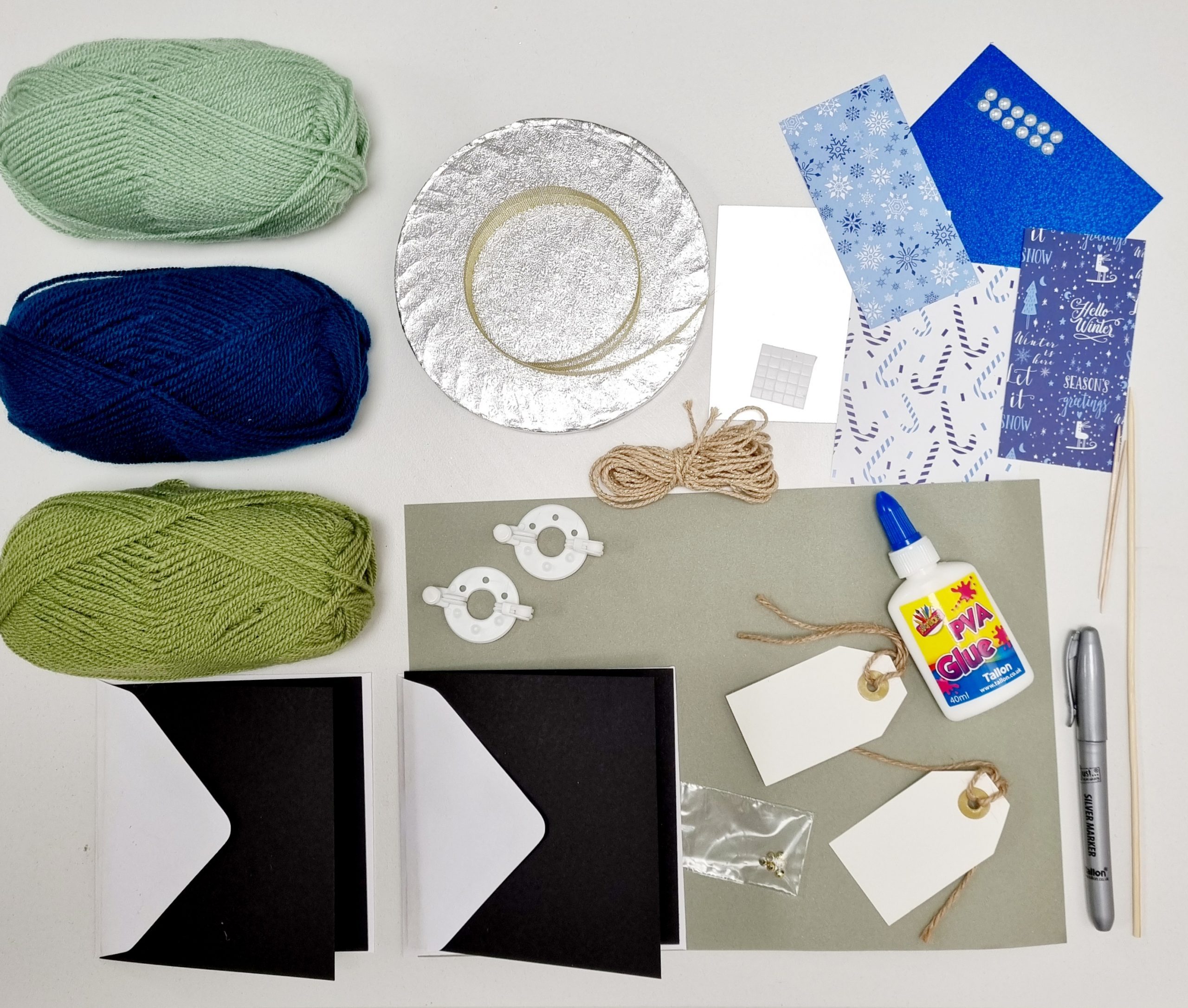 • Silver card, sparkly blue card, 3 different patterned paper offcuts, Silver marker pen, foam pads and pearl self stick gems.